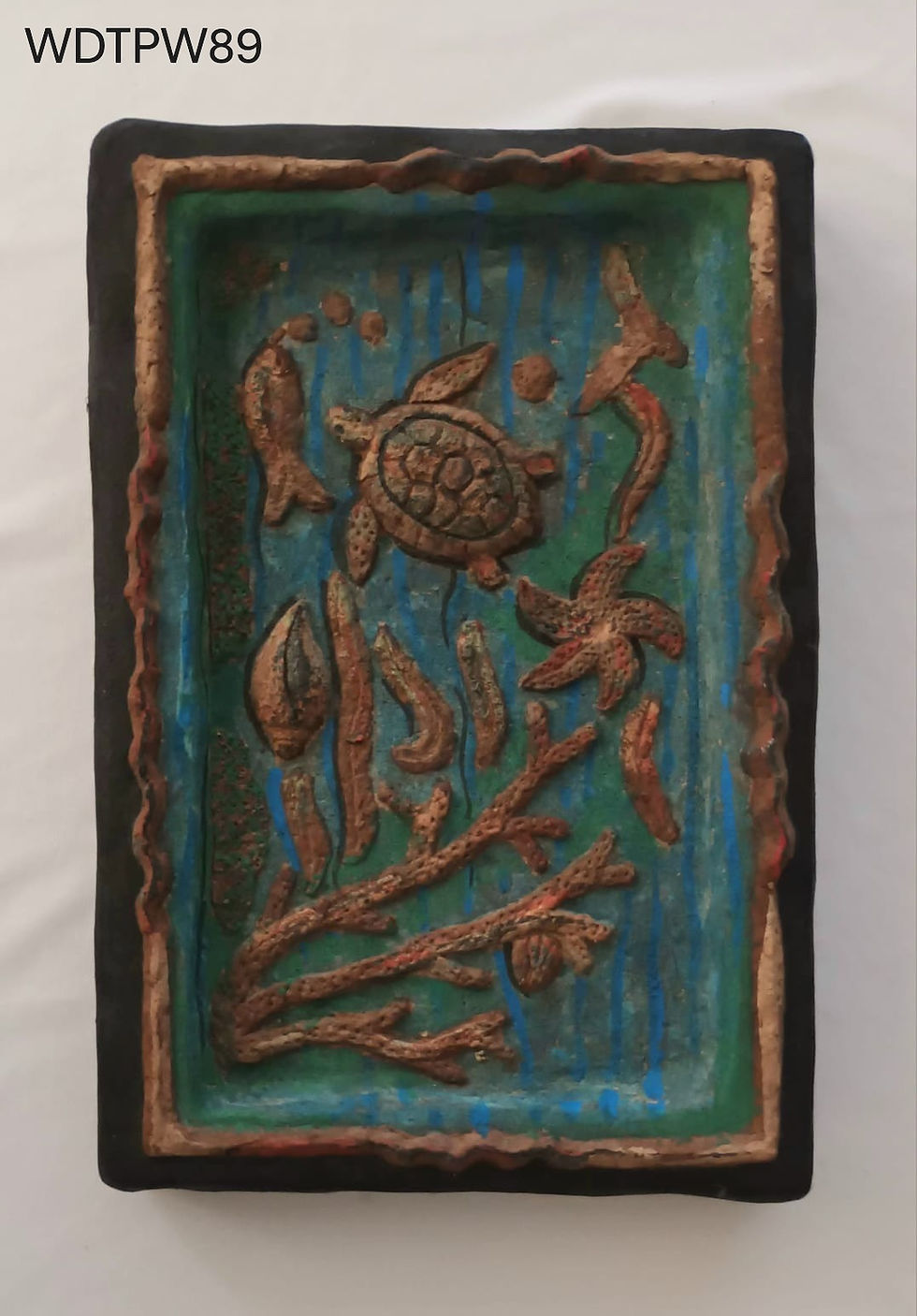 Wall Decor: Aquatic life painted on wood-mache plaque